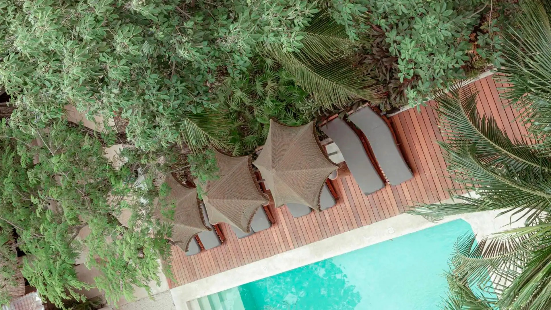 Aunque el hotel no está directamente frente al mar, sus huéspedes pueden disfrutar de acceso preferencial y tarifas especiales en algunos de los mejores beach clubs de Tulum.